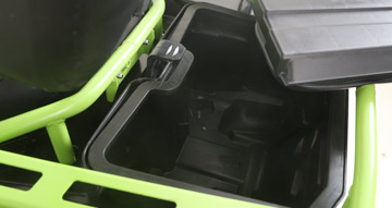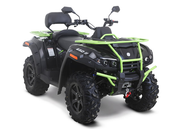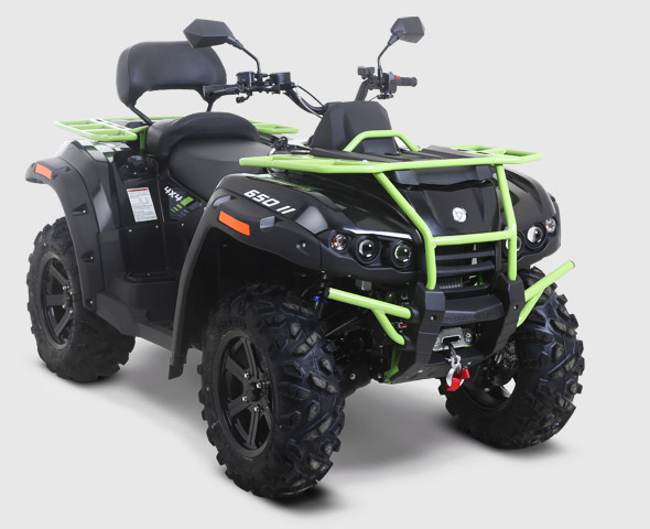 Продуманная эргономика обеспечивает высокий уровень комфорта как для водителя, так и для пассажира. У модели двухуровневое сиденье, благодаря которой пассажиру гарантирован хороший обзор. Для дальнего путешествия вдвоём у ATV предусмотрены передняя и задняя багажные площадки грузоподъёмностью 40 и 80 кг соответственно и два перчаточных ящика объёмом 9 и 16 литров. В базовую комплектацию входит фаркоп. Изменилось передаточное число редукторов – благодяря этому увеличилась максимальная скорость.