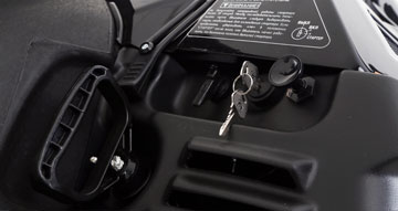 Модель оснащена двухуровневым сиденьем со съёмной спинкой с рукоятками для пассажира, обогревом рукояток и курка газа, гидравлическим тормозом, фаркопом.